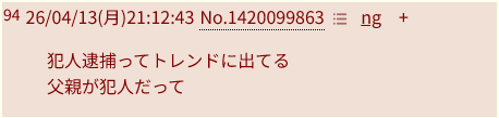 | … | 2726/04/14(火)10:57:19No.1420232750+お前ら小学生死体遺棄事件が親が犯人っぽそうで悔しくないのかよ |
