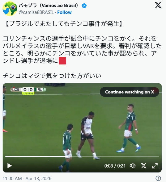 | … | 826/04/14(火)10:41:39No.1420229988+https://x.com/camisa8BRASIL/status/2043509541653090352 |