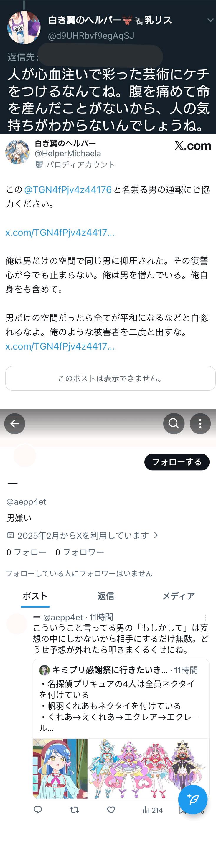 | … | 1026/04/14(火)15:53:31No.1420298967そうだねx16心の底から信じてずっとずっとやってんだろうな〜ってのがid出た後の怒涛の自演同意レスからも透けて見えて怖いんだよこの人… |