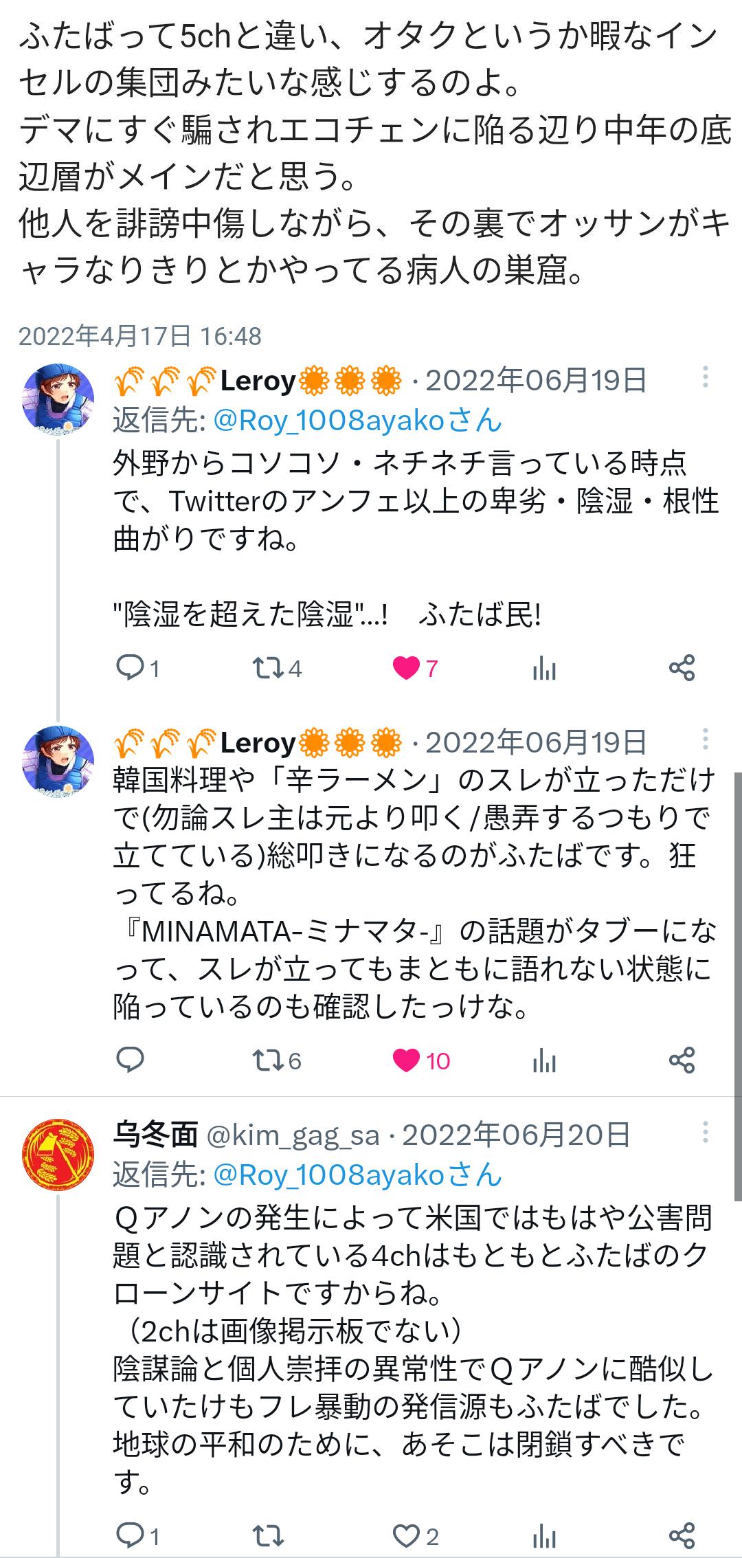 | … | 10626/04/14(火)17:33:33No.1420319211そうだねx1>いつも何らまさはると関係ないオタク語りしているだけの所にウヨだウヨだボロクソ言ってくるの左翼の方だろ |
