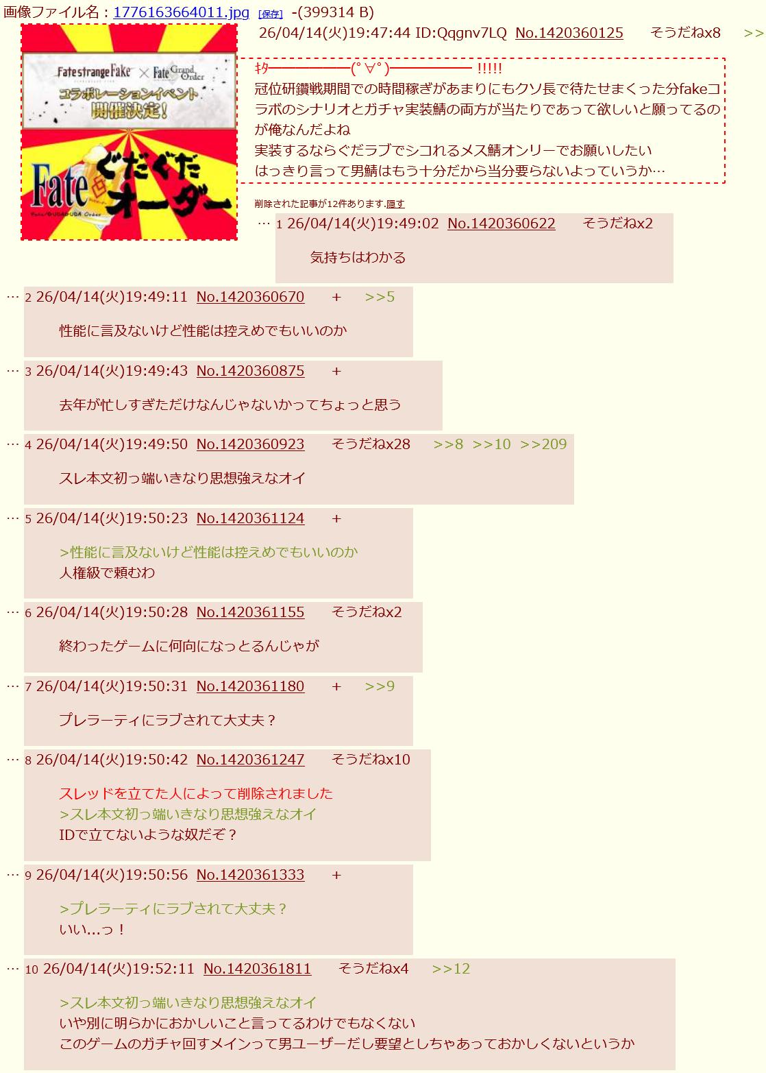 | … | 39826/04/14(火)20:57:34No.1420386104+>正直キャストリアの事をぐだの嫁方向でそんな好きな人いたんだってなるピリつき方してる |