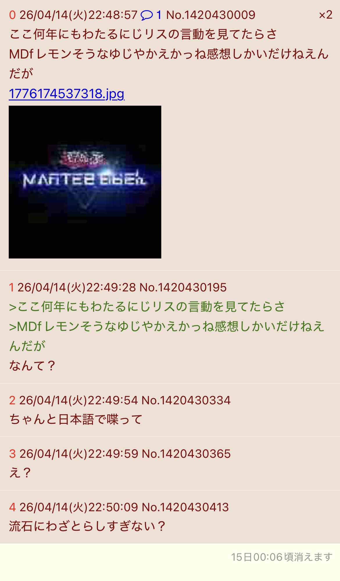 | … | 226/04/14(火)22:10:33No.1420415419そうだねx8日本語で話せよ開示請求常連さん |