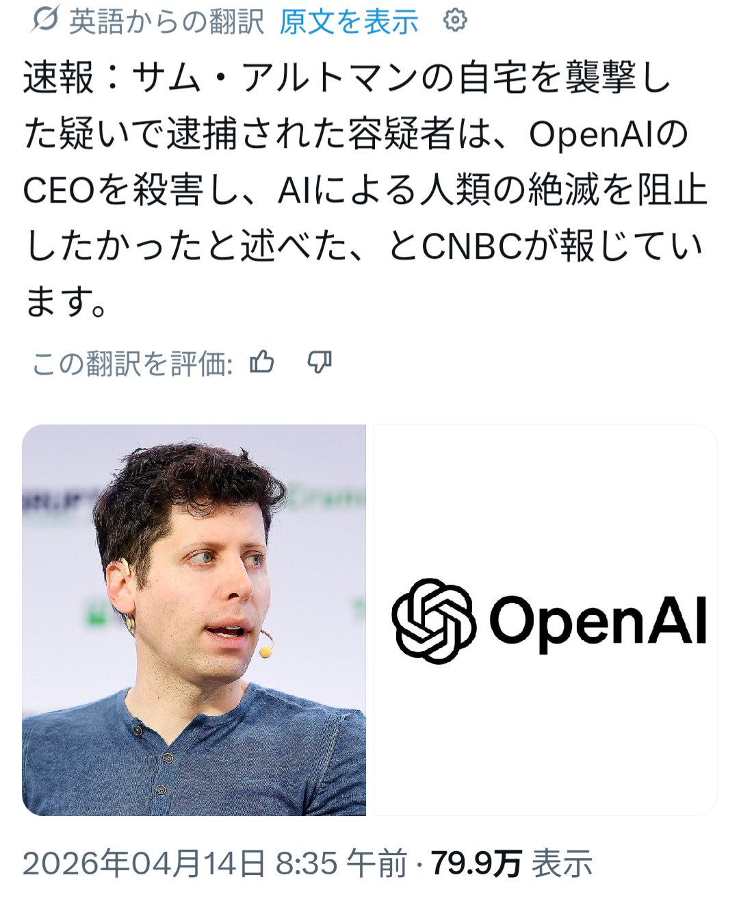 | … | 1326/04/14(火)22:20:12No.1420419143+なんならアルトマン消えてAIがさらに進化する可能性まであるのに |