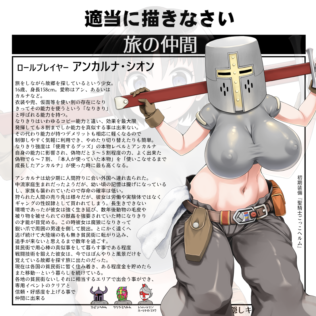| … | 6626/04/15(水)00:36:39No.1420463895そうだねx2>>聖騎士ごっこヘルムはどの聖騎士の8割になれるかで左右されそう >>任意の聖騎士を選択化だとかなり便利だけどやっぱりセイーッ!かな? >ネームドの聖騎士の特徴的な装備だとその人物に >それ以外ならセイーッ! もしパラチンヘルムがあったら偽物でもパラディンチンポの3割程度のチンポが生える…? |