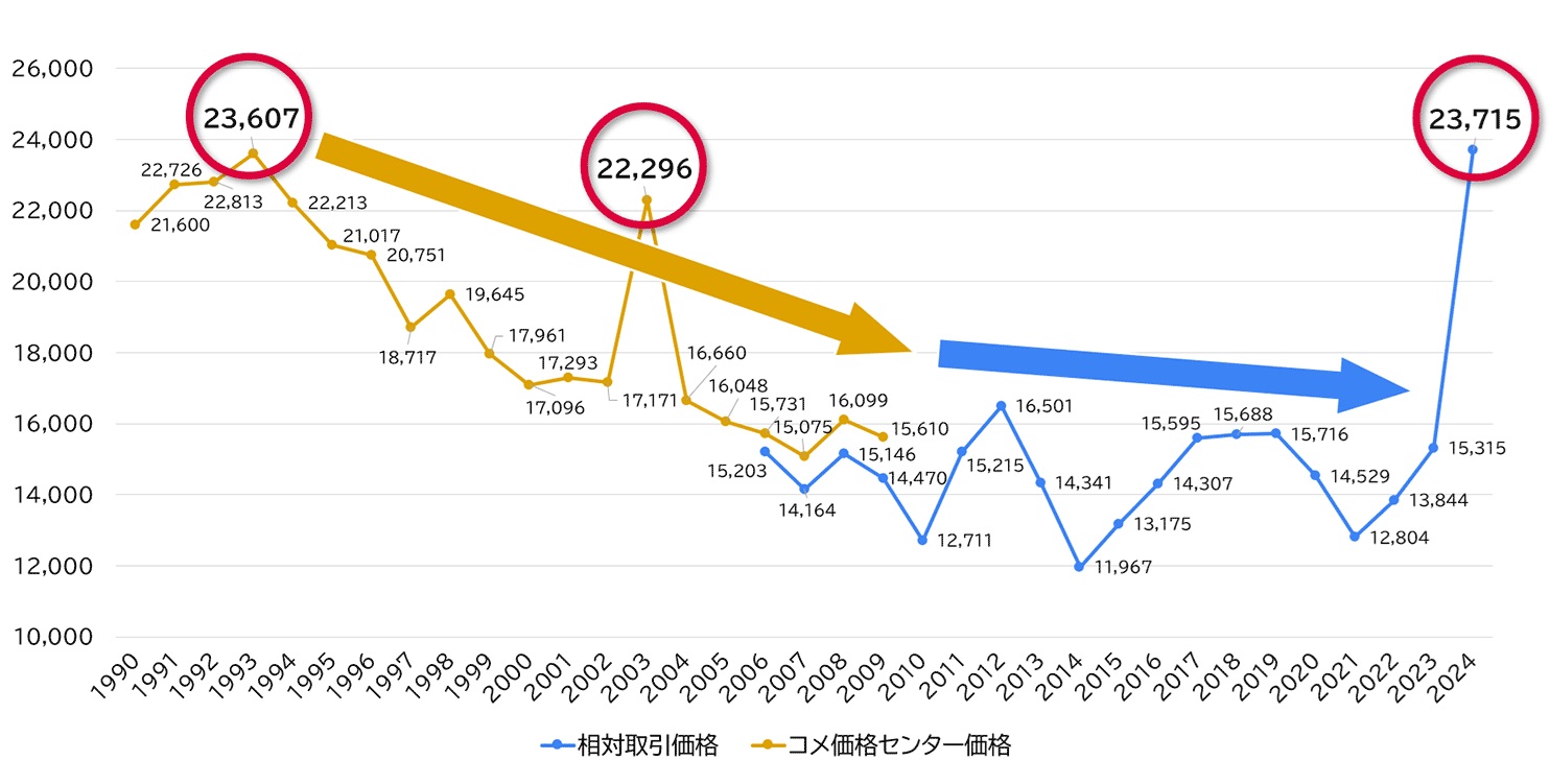 | … | 77126/04/15(水)08:33:06No.1420505220+>JAが概算金を釣り上げて高額で米を買い集めたからそこから卸に流れる米も高額になり |