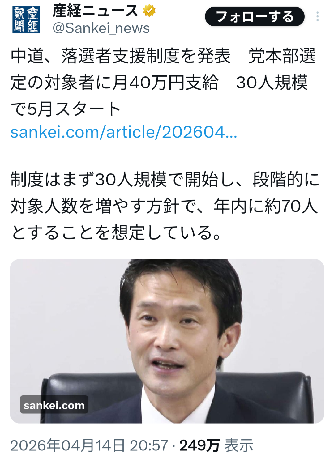 | … | 2326/04/15(水)09:30:20 ID:gia5BOTMNo.1420513866+また産経しか報じないやつか |