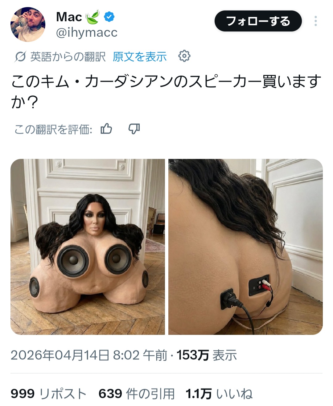 | … | 126/04/15(水)09:29:53No.1420513806そうだねx15こんなキモいスピーカー他に見たことない |