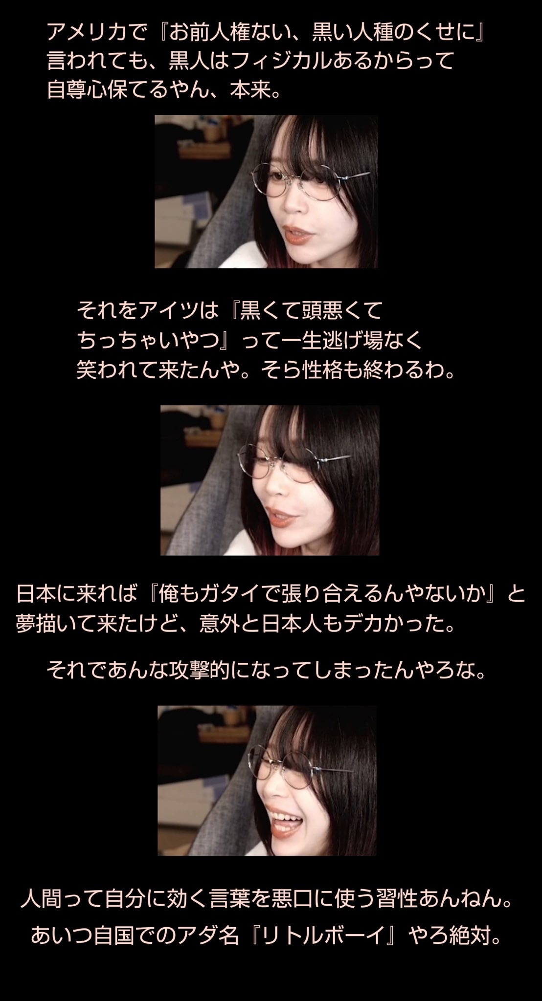 | … | 17226/04/15(水)12:29:33No.1420548602+チビの黒人てだけでアメリカで苦労してたのはわかる同情はしない |