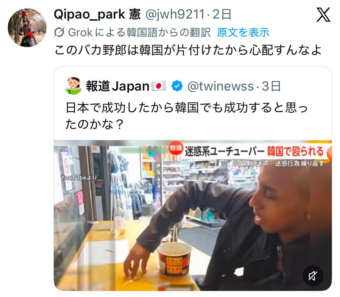 | … | 2626/04/15(水)12:05:22No.1420541411+韓国にいたのか…もう母国に帰ればいいのに |