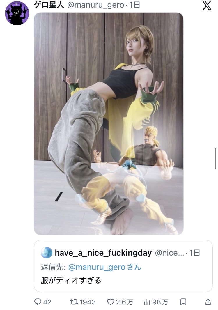 | … | 126/04/15(水)11:26:46No.1420533165そうだねx5体幹までDIOすぎる |