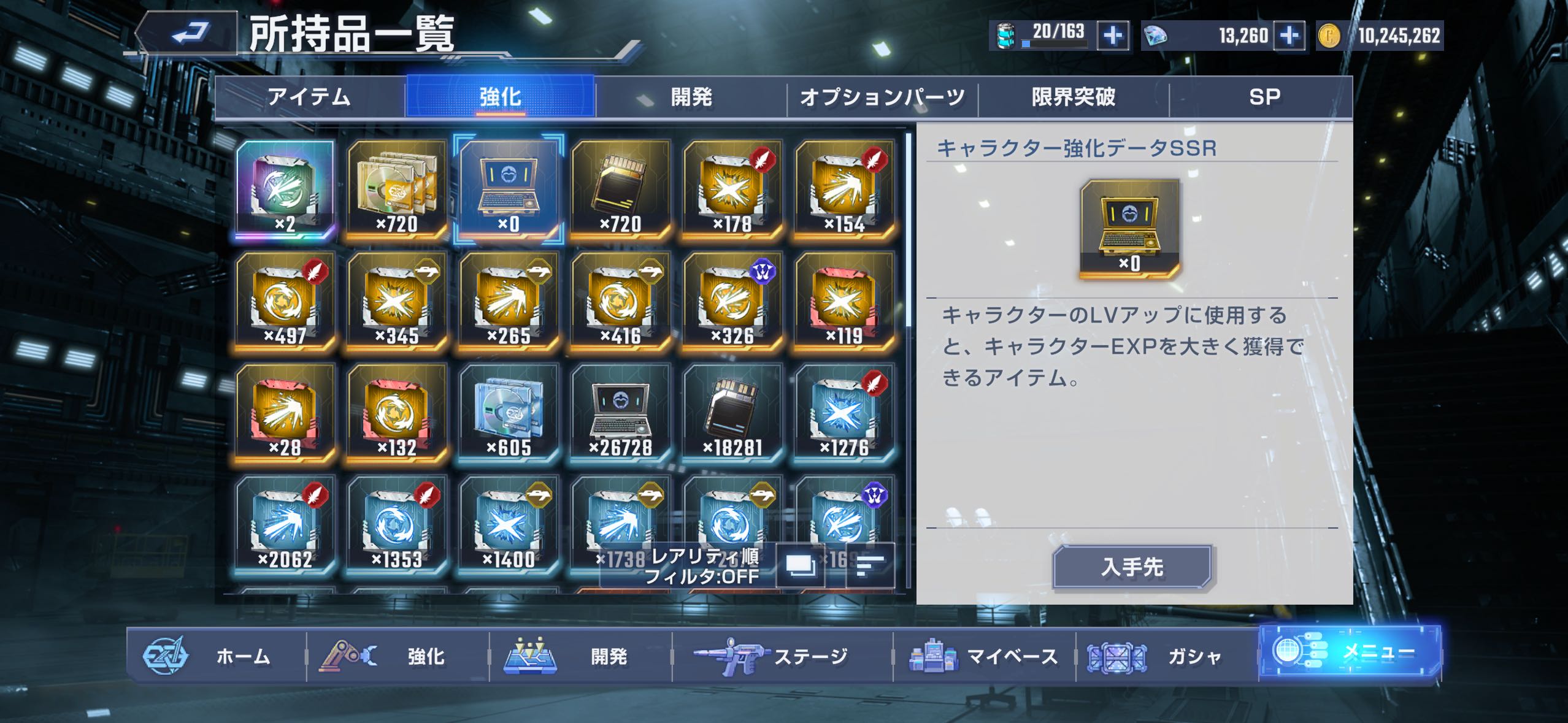 | … | 11326/04/15(水)15:57:36 ID:OK1Z3kAYNo.1420595386+Gジェネオリジナルと後から追加された一年戦争系のSRとジョニーライデンとエグザベ君以外は基本素材突っ込んでいるから経験値全然足りん |