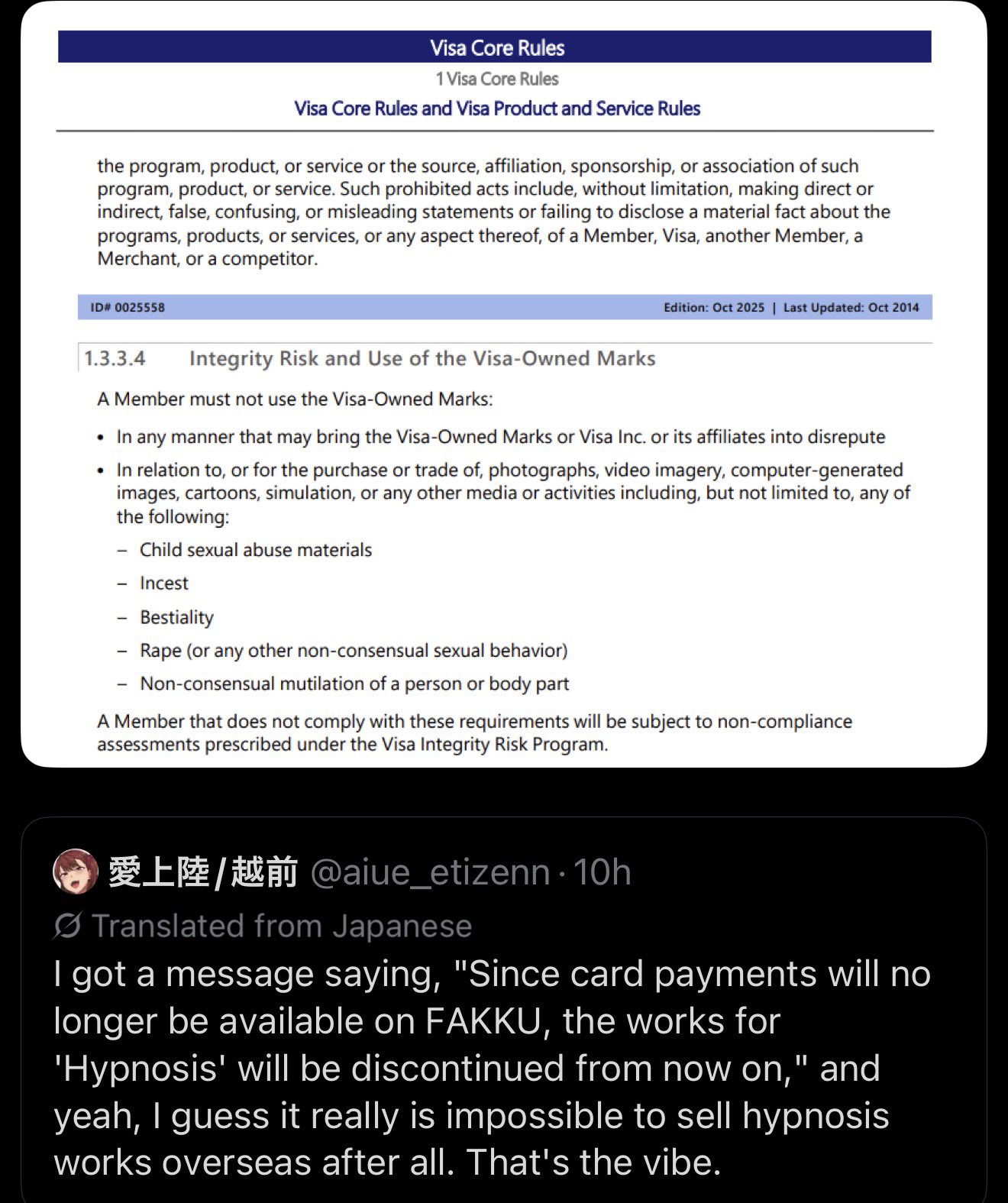 | … | 8426/04/15(水)16:32:43No.1420602137+JCBはかなり自主規制に抗ってくれてるな |
