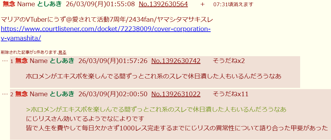 | … | 23426/04/15(水)17:01:53No.1420608429そうだねx1にじさんじ内部はセックスだらけって聞いたけど |