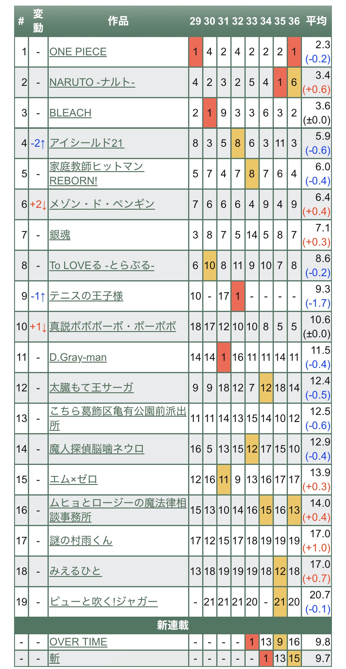 | … | 4626/04/16(木)06:29:22No.1420788229そうだねx11>ナルトは2部になってから低迷扱いブリーチは全編ボロカスリボーンDグレは足踏み展開多すぎみたいな感じでネチネチやられてた |