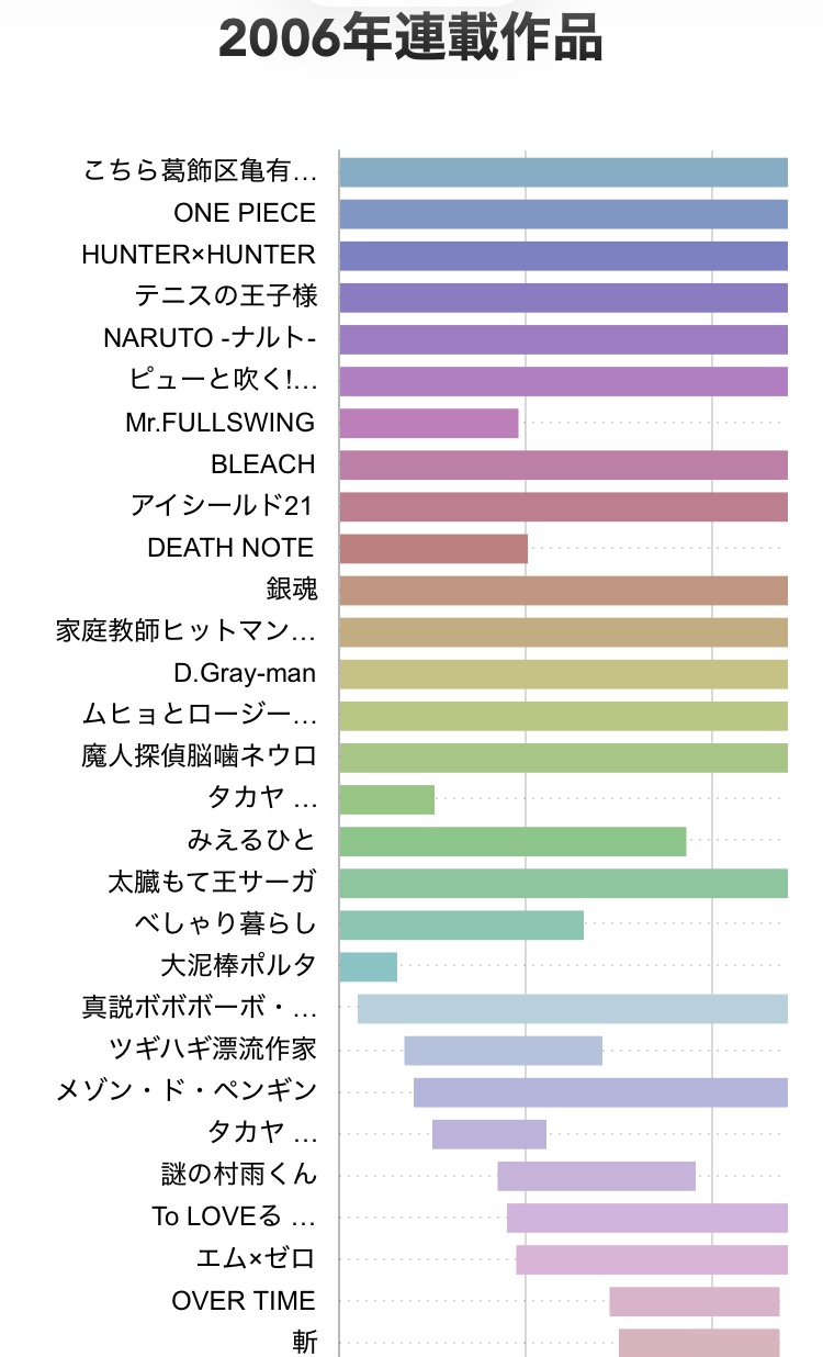 | … | 4326/04/16(木)06:27:08No.1420788117そうだねx12>今見ると思い出補正があるだけで当時はナルトは2部になってから低迷扱いブリーチは全編ボロカスリボーンDグレは足踏み展開多すぎみたいな感じでネチネチやられてた |