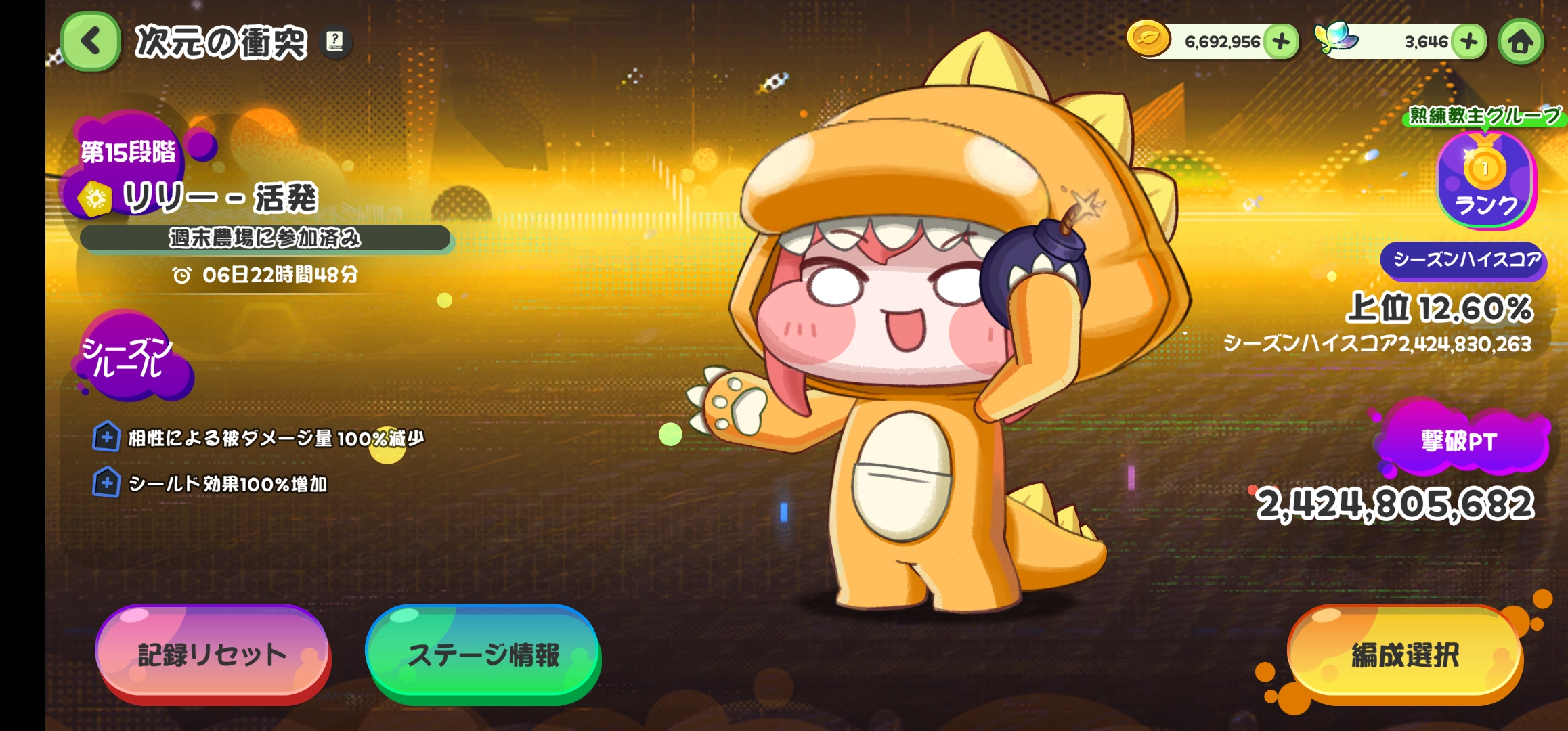 | … | 56526/04/16(木)12:57:16 ID:TWMn1/MwNo.1420853755+15段階リリーを1:04で倒して今200位ギリギリくらいにゃん |