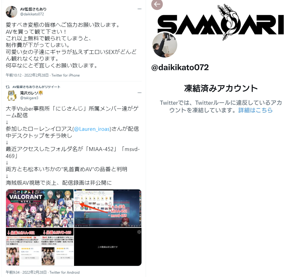 | … | 9526/04/16(木)14:54:19No.1420878568+にじさんじが偽トロ使ってるなという話題を出したら凍結された |