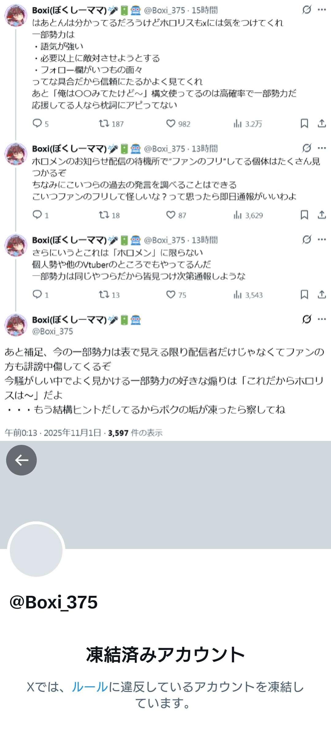 | … | 8326/04/16(木)14:49:57No.1420877779+大量通報だけで凍結するならもっと凍結される著名人大量発生するわ |
