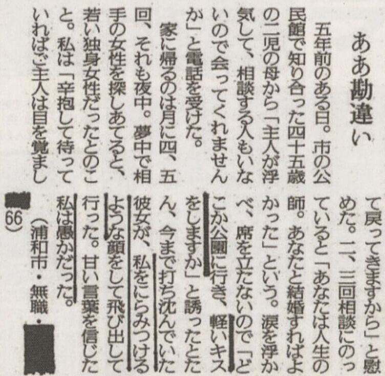 | … | 3526/04/16(木)14:38:24No.1420875697そうだねx1ジジイ側の既婚か未婚か離別かとかの情報がまったくないのが味わい深い |