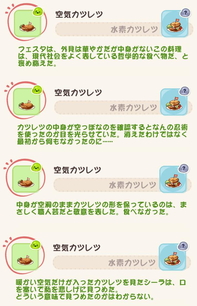 | … | 5326/04/16(木)17:57:42No.1420912270+運営も何キメたらこんな変な料理を感想つきで実装しようと思ったんだよ |