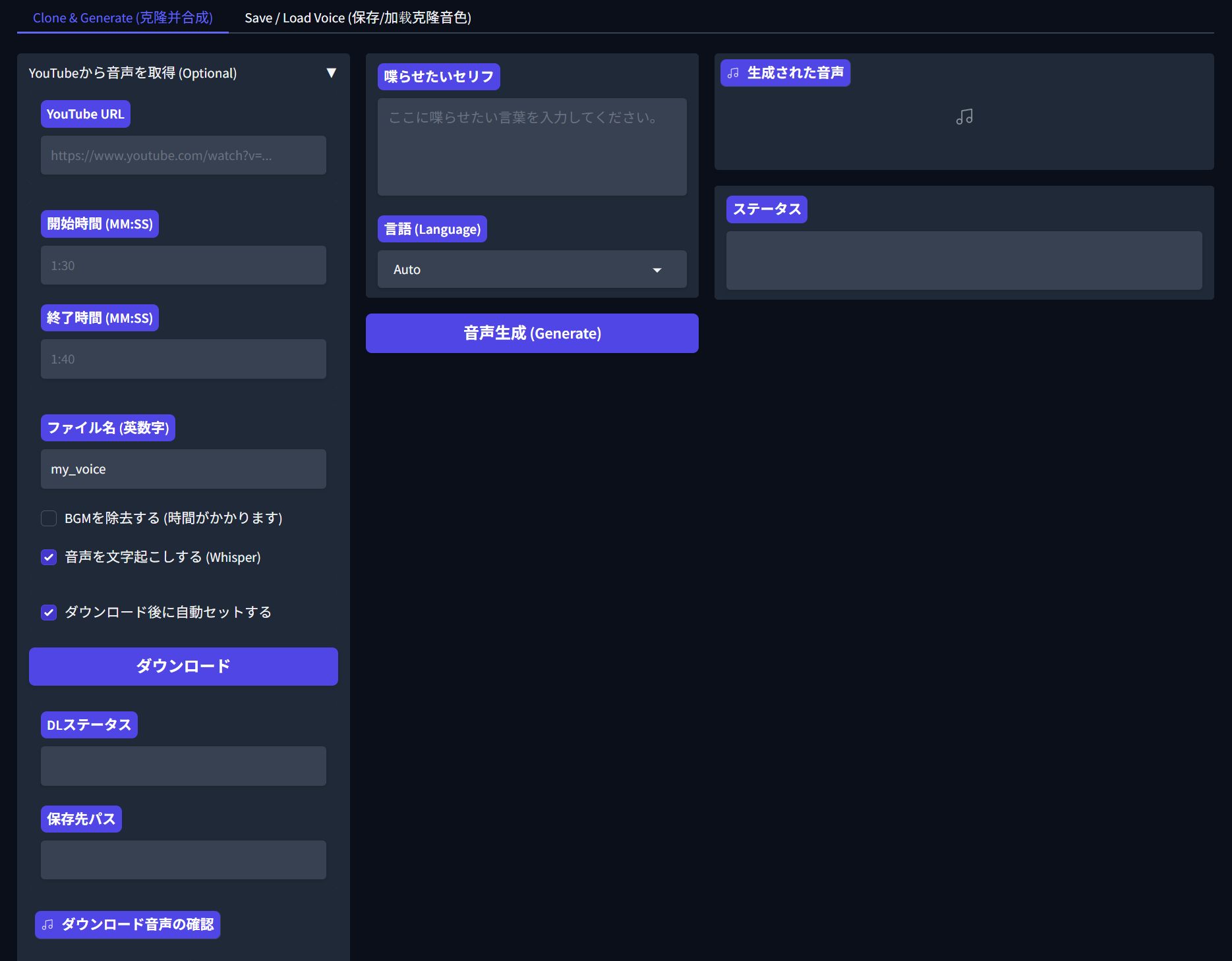 | … | 7726/04/16(木)19:13:25No.1420931846+本来はボイスデザインとか自分の声とかを使って自動音声作るツールだかんな! |