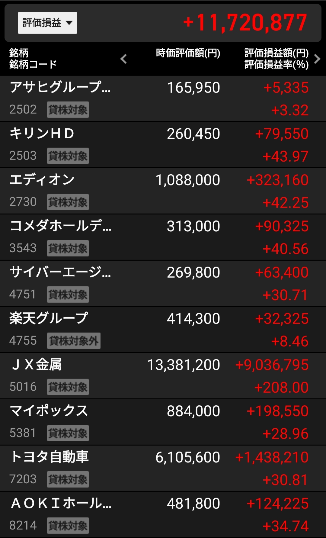 | … | 2826/04/16(木)19:32:38No.1420937317+評価損益10億は無いと発言権無いだろう |