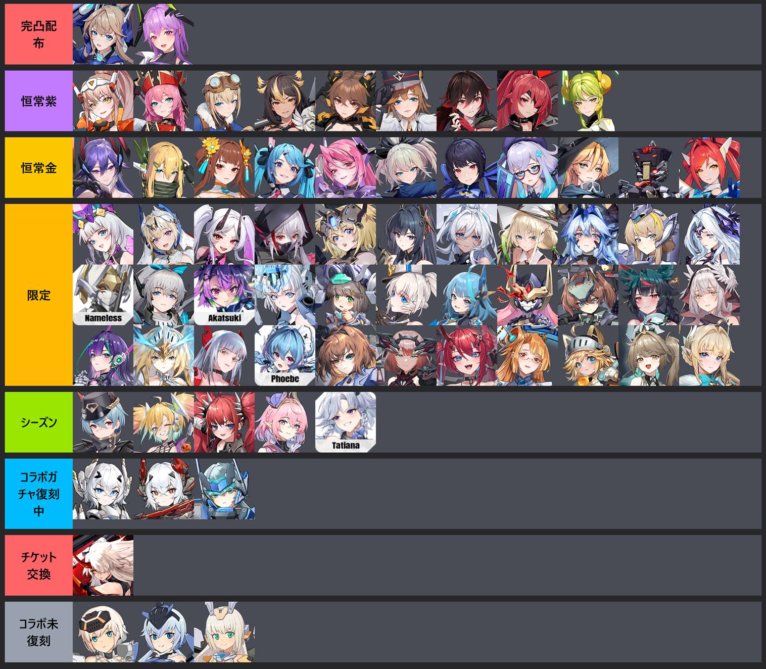 | … | 4126/04/16(木)23:16:22No.1421016006+さっき限定とか恒常とかの一覧無いの?っていってた「」長が居たから作ってきたうんち |