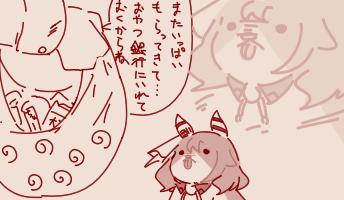 | … | 5126/04/17(金)10:02:01No.1421091469+なぁタキオン…ミラ子とミラ公が勝手におやつを食べないようになるお薬とかないかな…? |