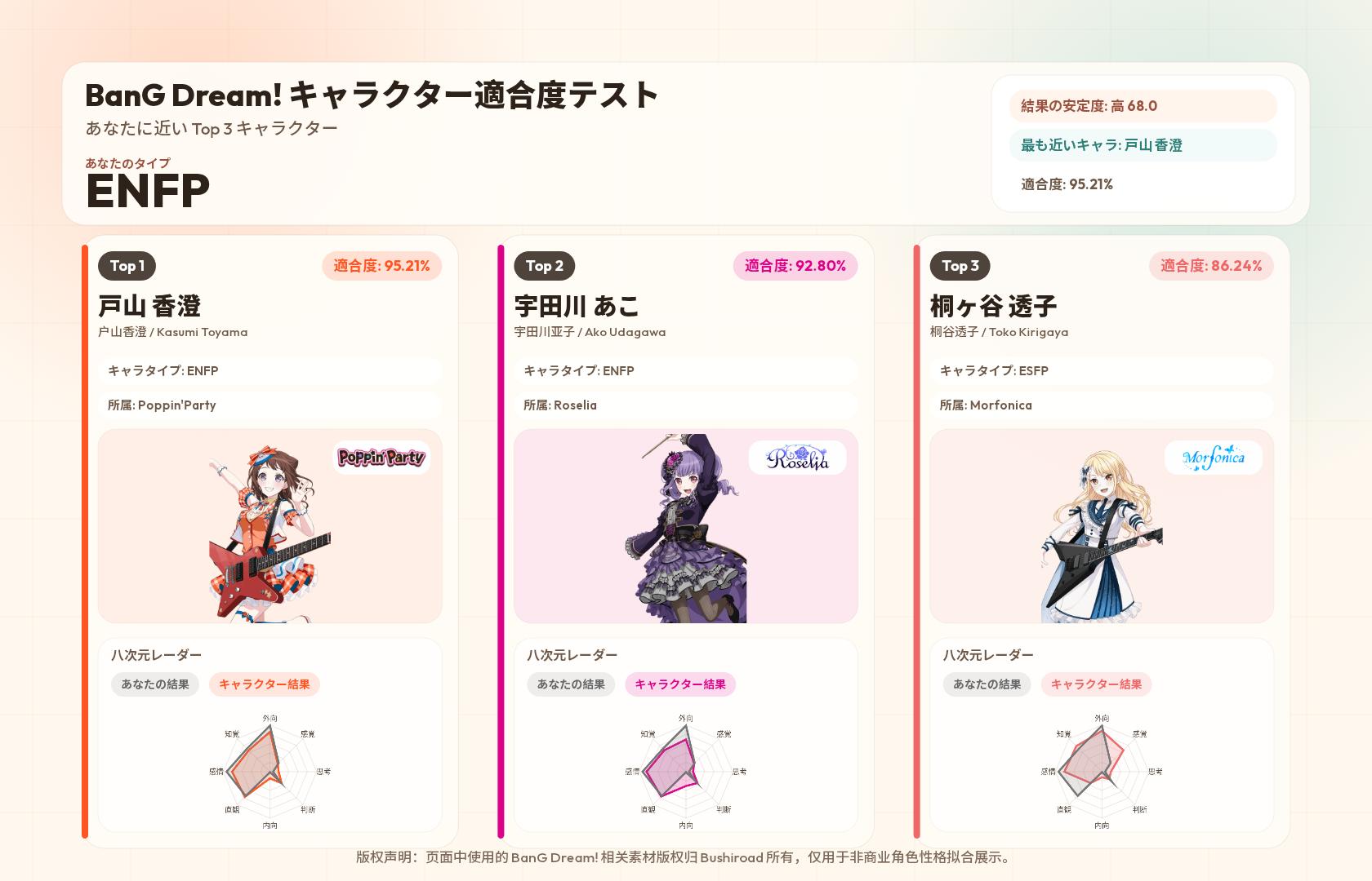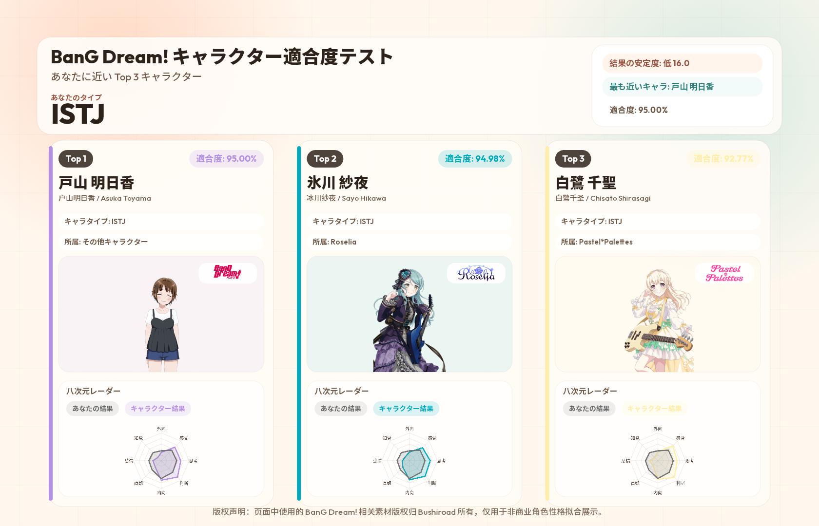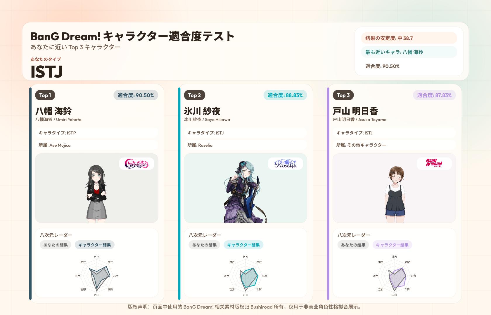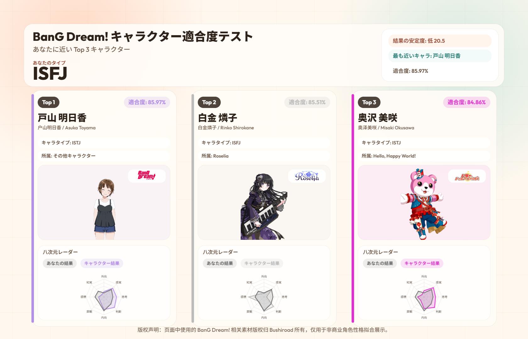 https://www.bangdream-mbti.cn/このスレは古いので、もうすぐ消えます。