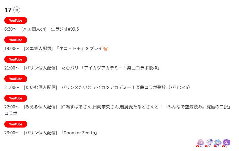 | … | 11026/04/17(金)07:38:48No.1421069104+今日発表されるスケジュールがラストだと思うと動悸がしてきた |