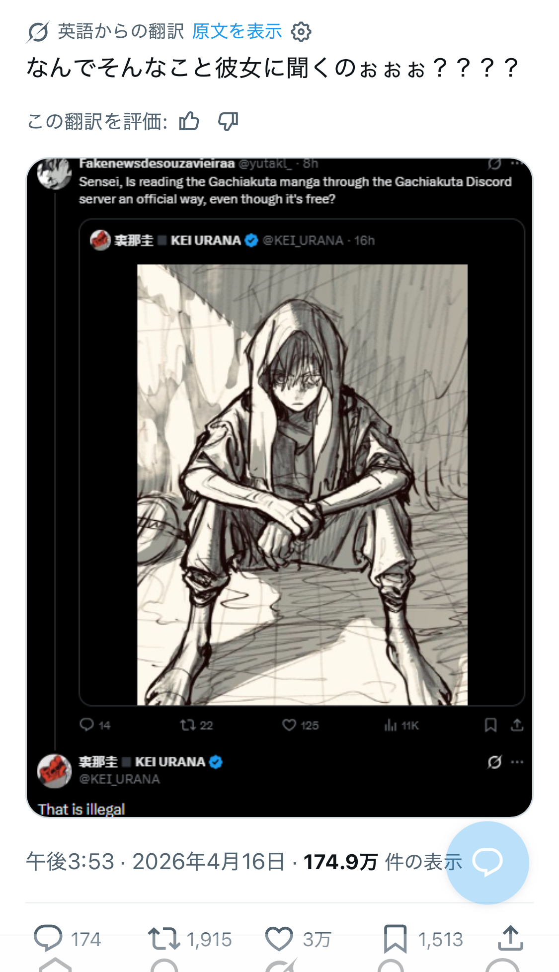海外ファンがガチアクタの作者本人にXで作品をdircordで無料で見ていいか聞く