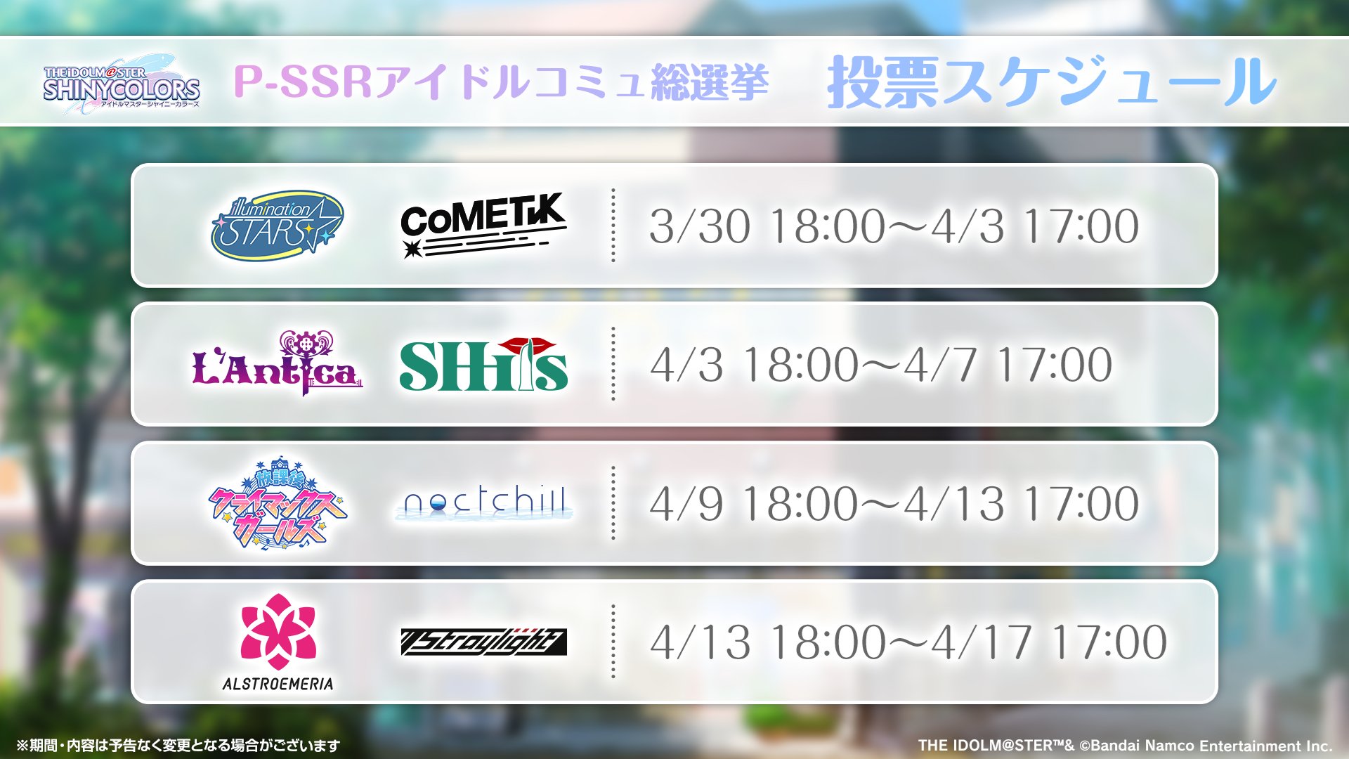 | … | 17826/04/17(金)17:21:45No.1421179386+>https://x.com/imas_official/status/2045052154508157153?s=20 |