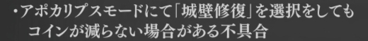 | … | 7526/04/17(金)16:09:47No.1421164868そうだねx25>・アポカリプスモードにて「城壁修復」を選択をしても |