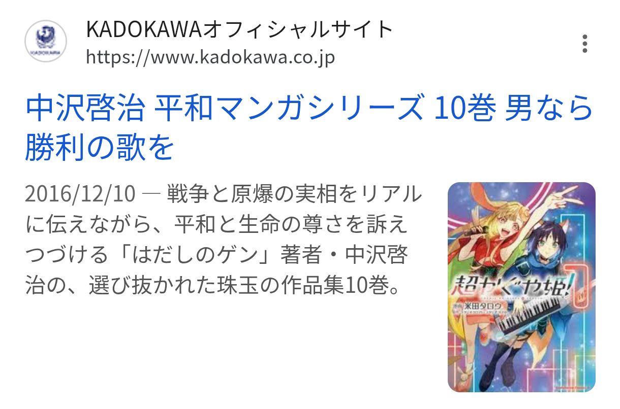 | … | 33526/04/17(金)20:26:21No.1421237145そうだねx2中沢先生なら体験から反戦平和を訴えてても仕方ないと思うんよ |