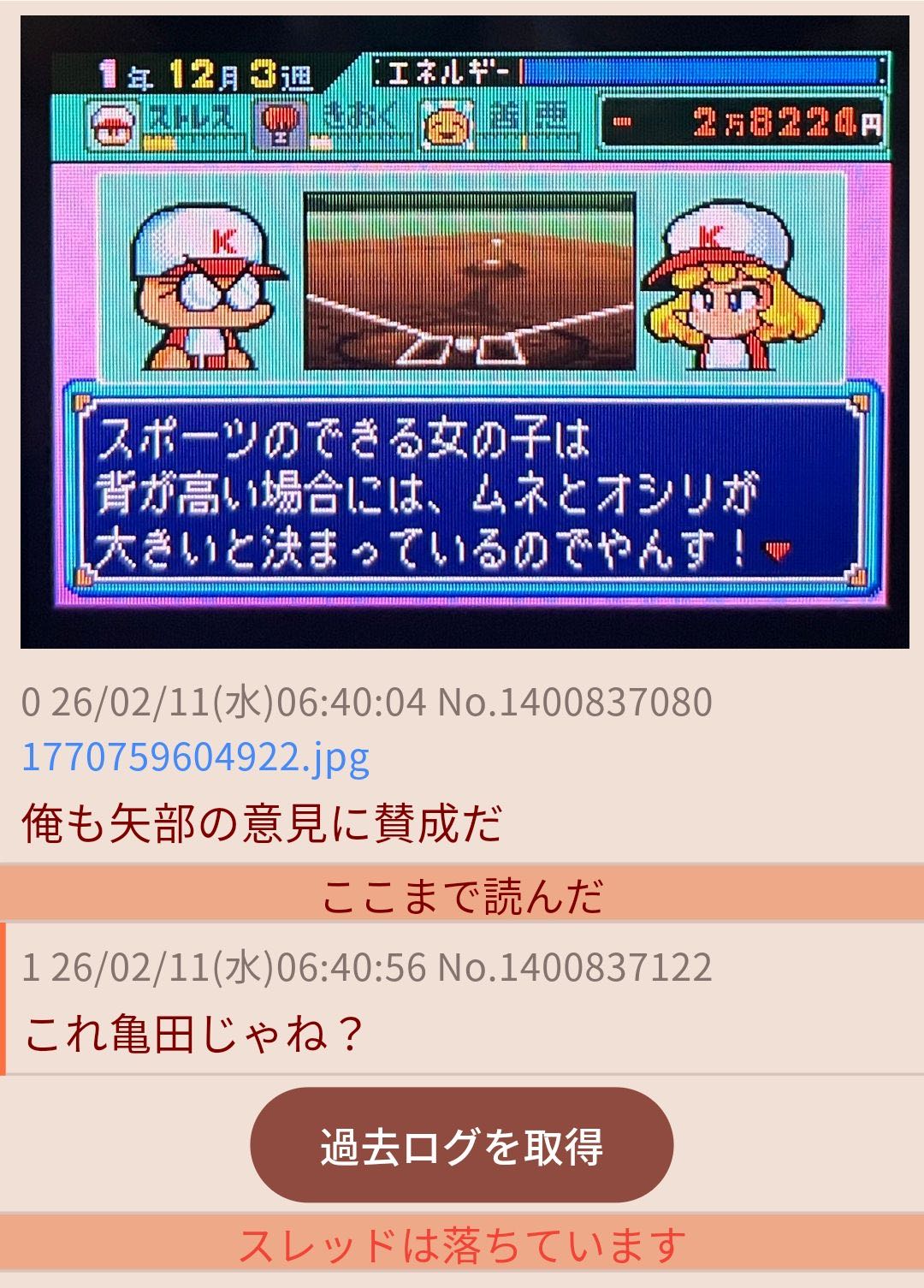 | … | 2626/04/17(金)19:59:39No.1421226005+誤爆とかミスった発言とかログ消えるほど昔でも一生覚えてて引き摺るよな |