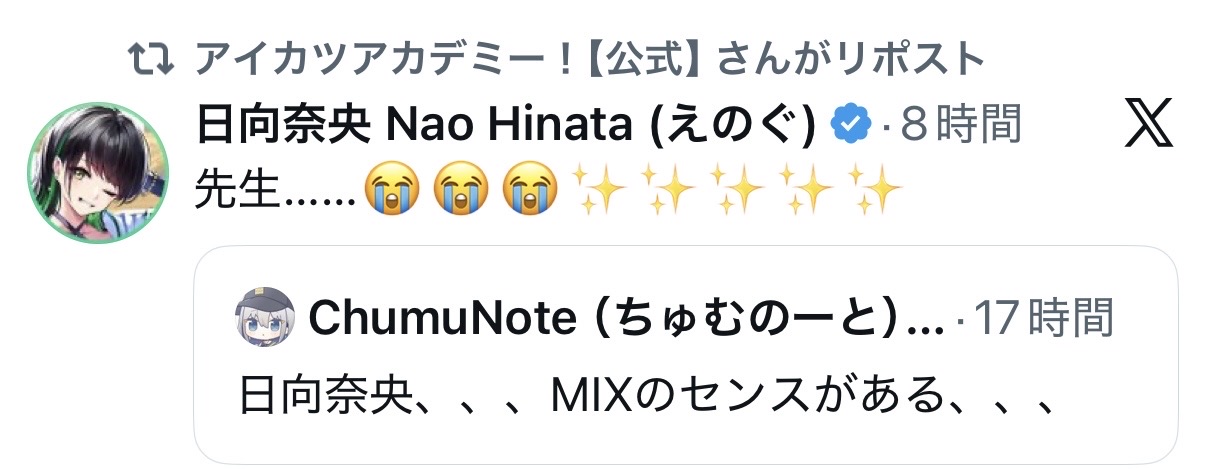 | … | 9926/04/17(金)22:33:20No.1421293268そうだねx24/26以降えのぐの公式アカウントがなんか限界オタクみたいになってるかもしれんな… |
