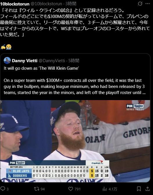 | … | 4826/04/17(金)22:41:04No.1421296740+正直ワールドシリーズのド軍打線はしけっしけだったからな…ほんとよく勝てたと思う |