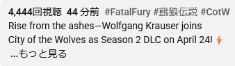 | … | 926/04/17(金)22:32:39No.1421292979+真っ当にかっこいいクラウザー餓狼2以来? |