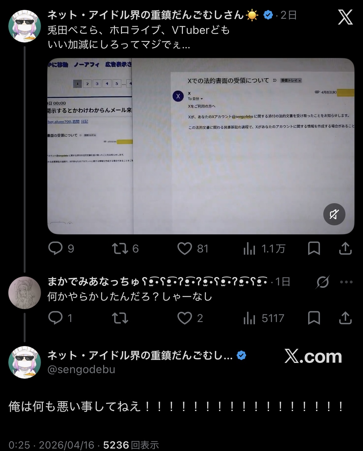 | … | 2026/04/17(金)23:34:50No.1421318168そうだねx10どう見ても発狂してるのは粘着してる側にしか見えないが… |