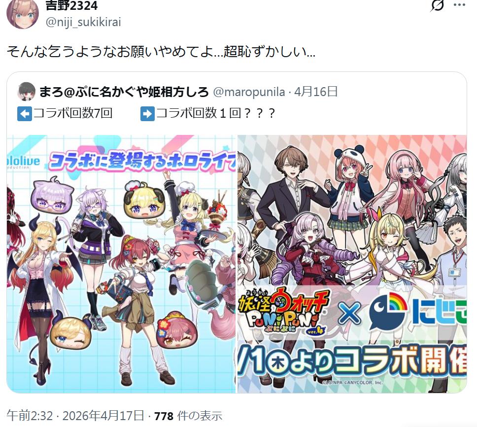 | … | 2626/04/18(土)00:11:23No.1421331329そうだねx2コラボ減ってるように見えるのはブランディング戦略のためですー! |