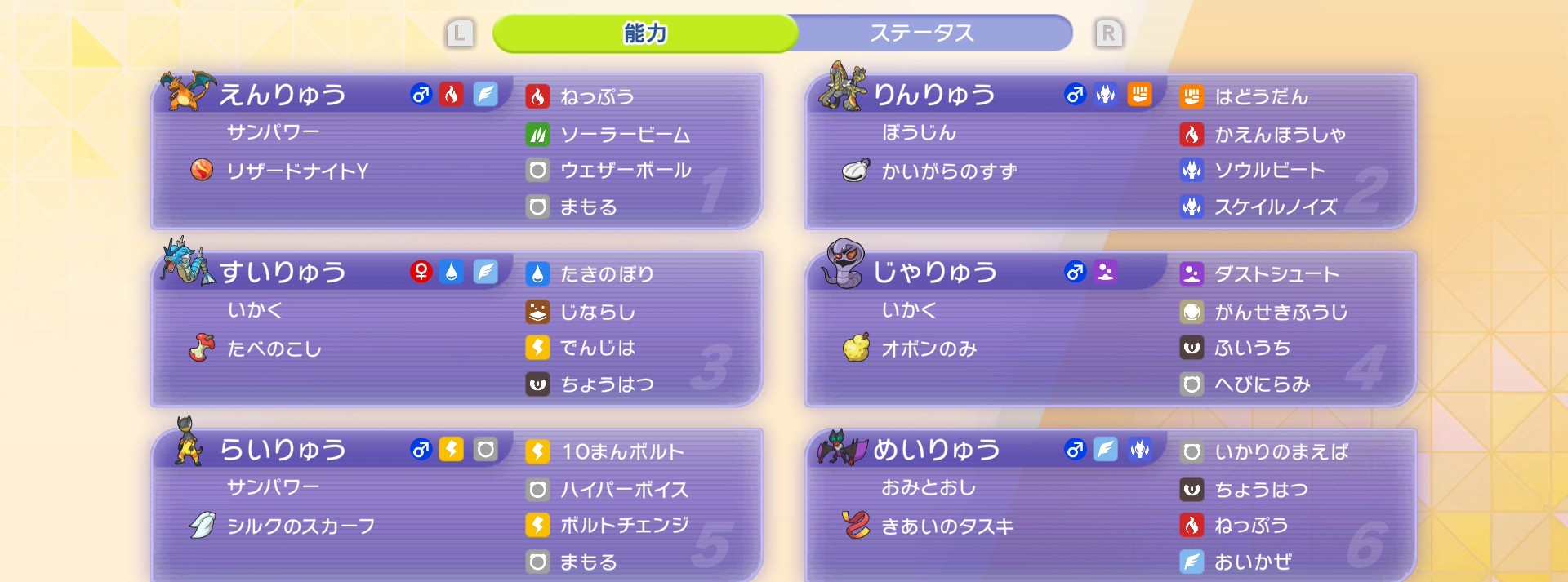 | … | 51626/04/18(土)01:47:36No.1421355957+>怒りの粉使えて葉緑素使えて眠り粉も使えて… |