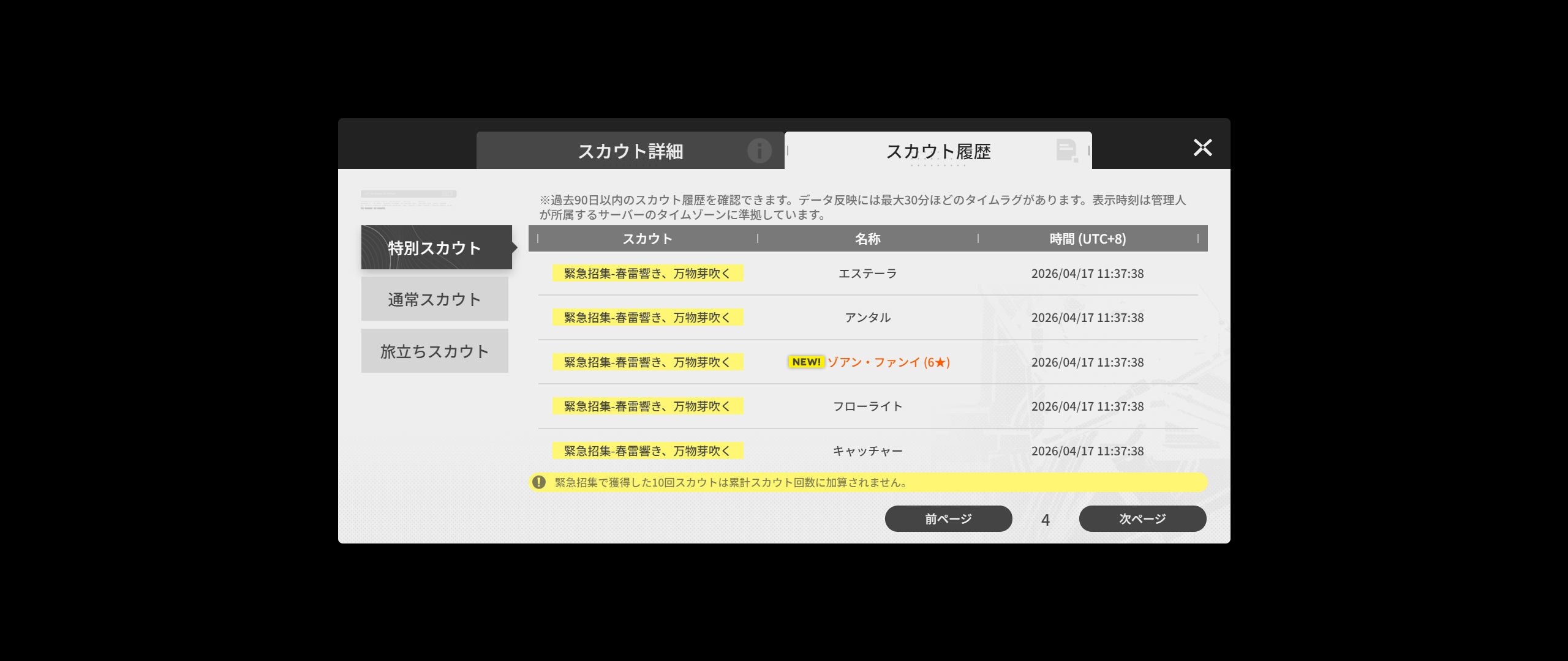 | … | 22026/04/18(土)06:24:08 ID:Xdzm7o9oNo.1421372282+>自分が今何連ガチャ回したかってどこかでわかる? |