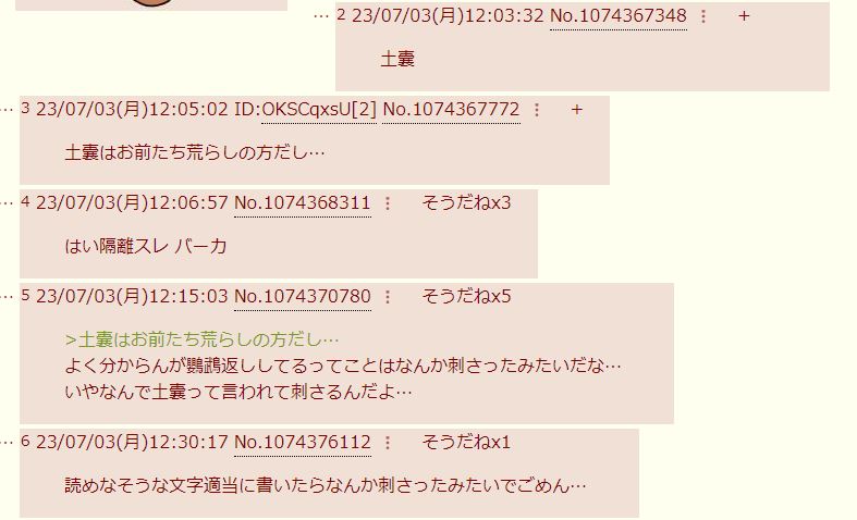 自分に向けられたであろう知らない言葉は全て自分への罵倒であるという前提が無ければ出てこないレス…
