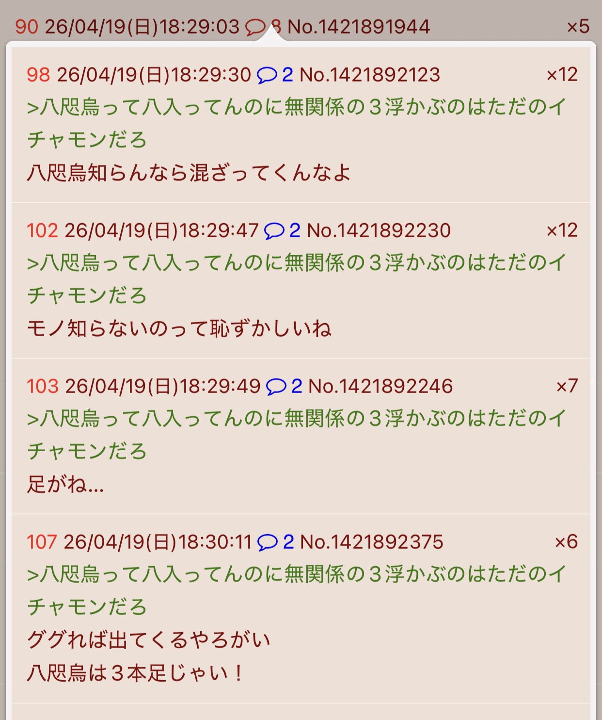 | … | 7326/04/19(日)21:07:43No.1421972942そうだねx2推測できるのは八咫烏の足が三本だからそのことを言ってるの? |