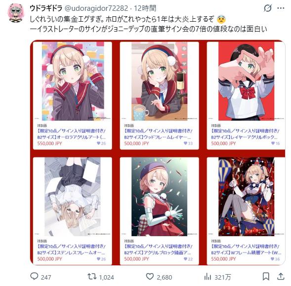 | … | 4326/04/20(月)09:24:36No.1422104247そうだねx8>しぐれういの集金エグすぎ。ホロがこれやったら1年は大炎上するぞ 😨 |