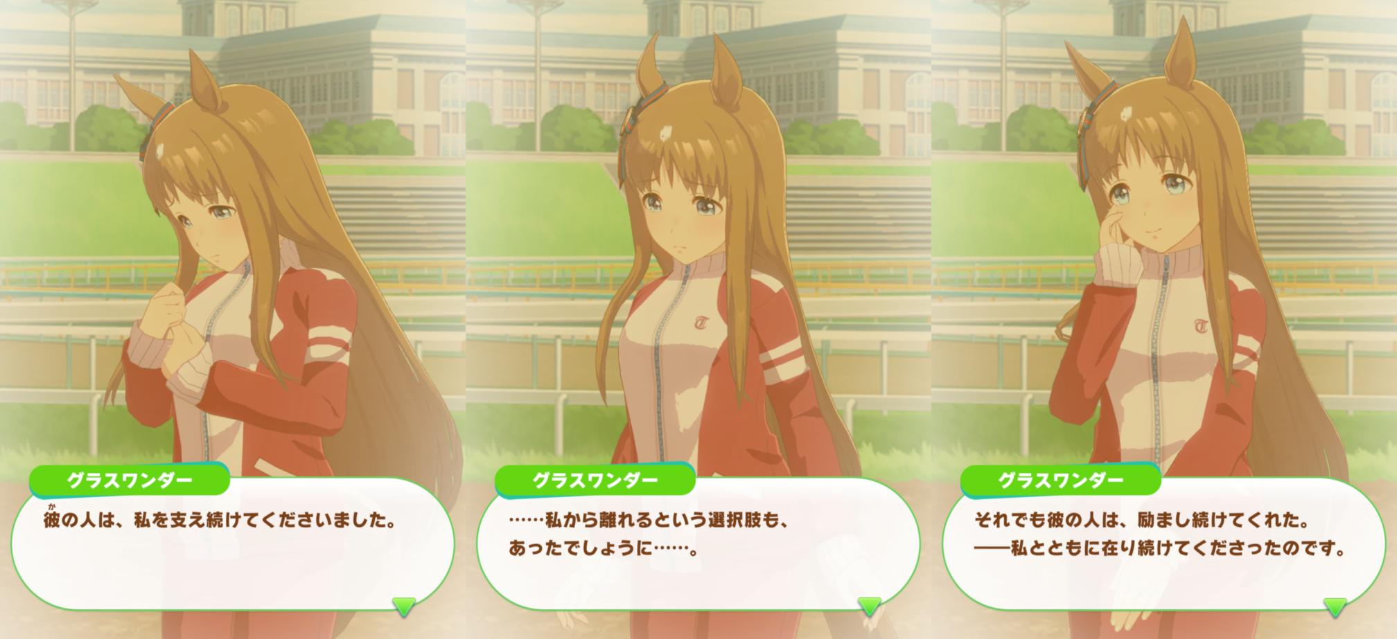 | … | 3326/04/20(月)12:52:32No.1422146334そうだねx8>>別のネームドウマ娘に担当トレーナーついてること明言されたの割と珍しいな |