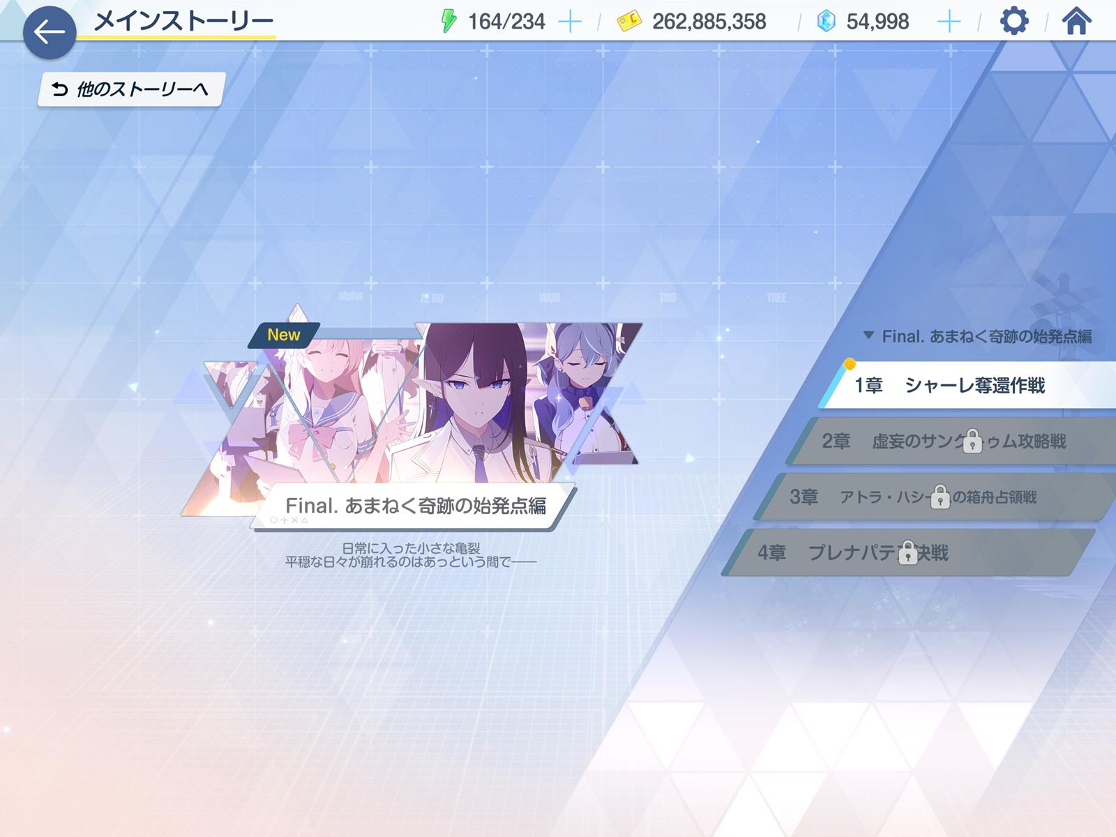 | … | 1026/04/20(月)15:42:14No.1422180398+明日の分の解放条件見ると カルバノグ2章 →第2部プロローグ(明日更新分 全4話) →vol.0 連邦生徒会編(明日更新分 全10話) →vol.Ex ロア追跡編 ←連動→ 特殊作戦ロア の順で遊べば良い感じかな というか解放条件で縛ってあるからこの順でしか読めない感じかな とりあえず一気に更新されてどれから読めば良いんだ?って混乱はなさそうで安心した |