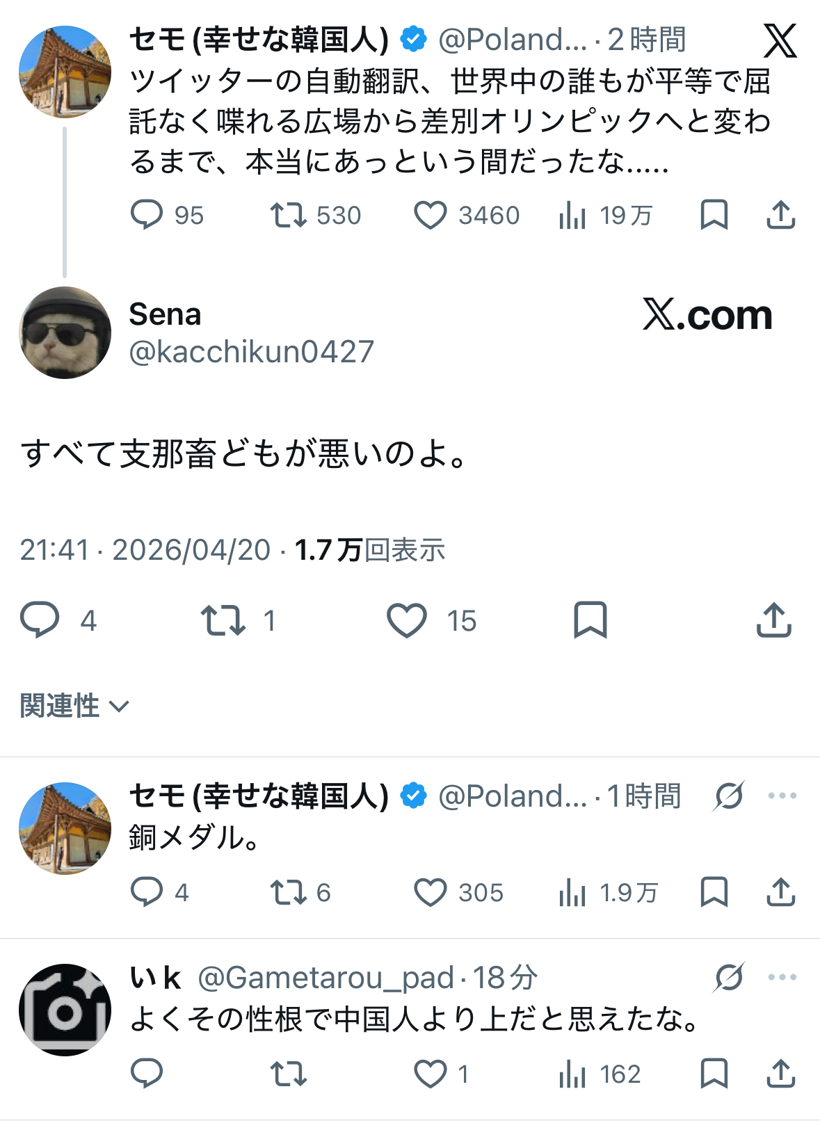 タチが悪いのがアルゴリズムで暴れるアホほど目立って翻訳されて日本の恥になるんだよな