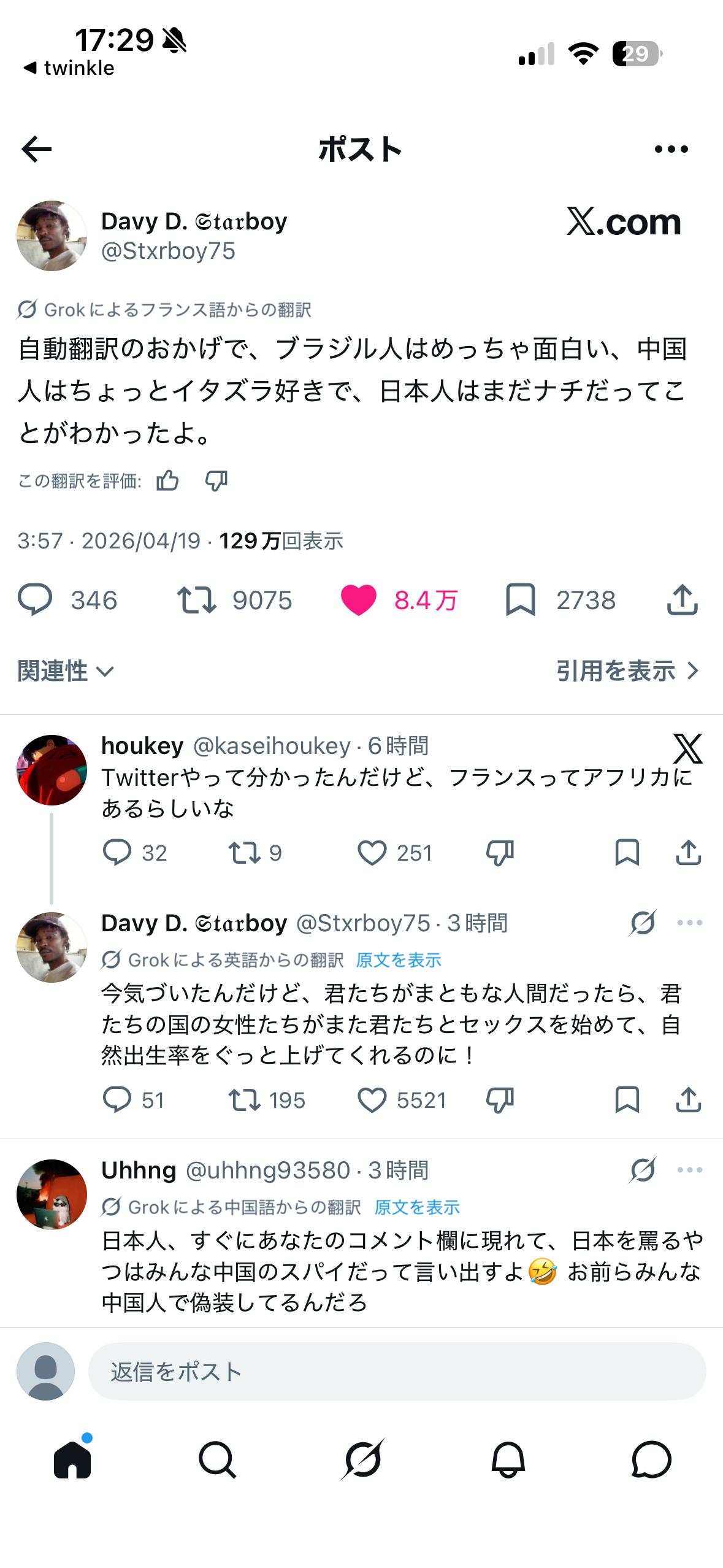 日本を思うなら一生Xにレスすんなと思ったね