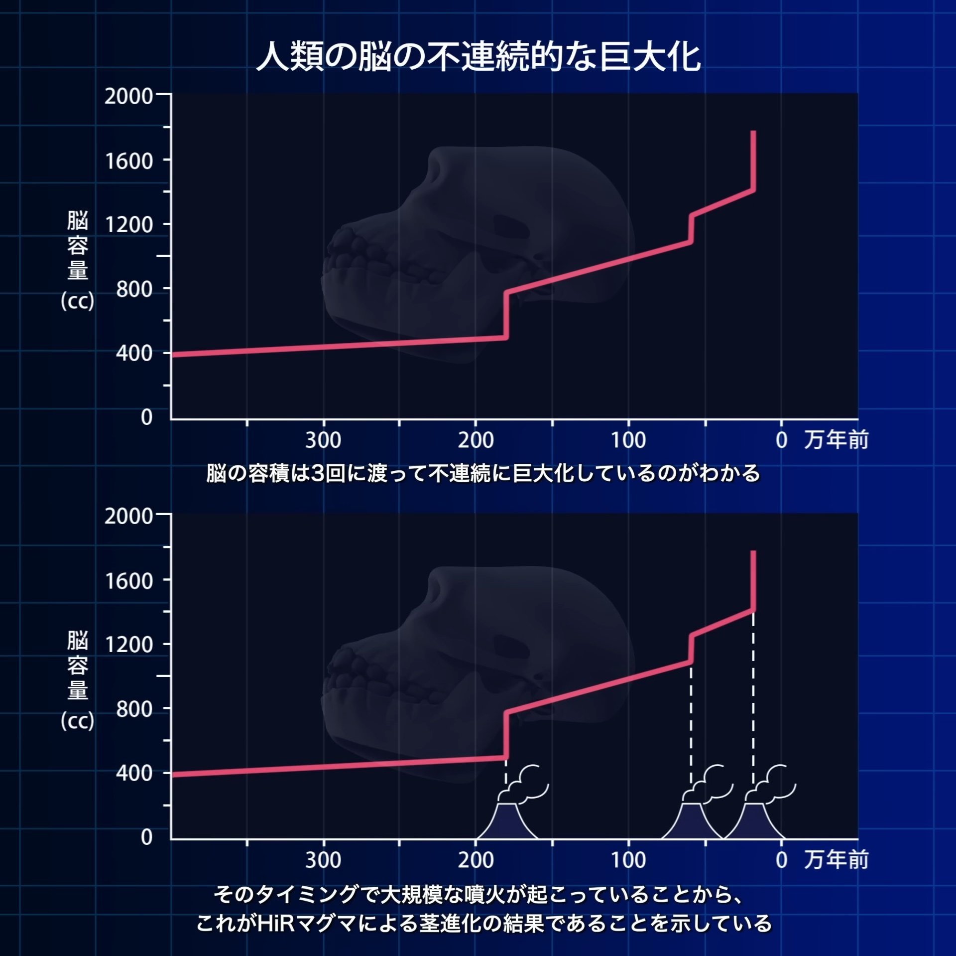 次の大噴火で人間はさらに脳容量が増加する